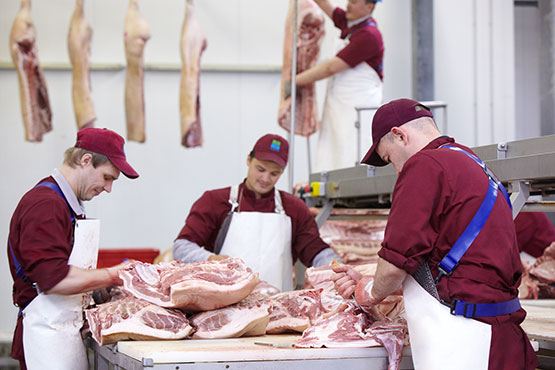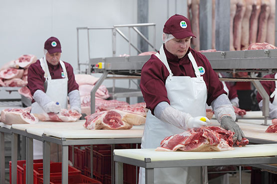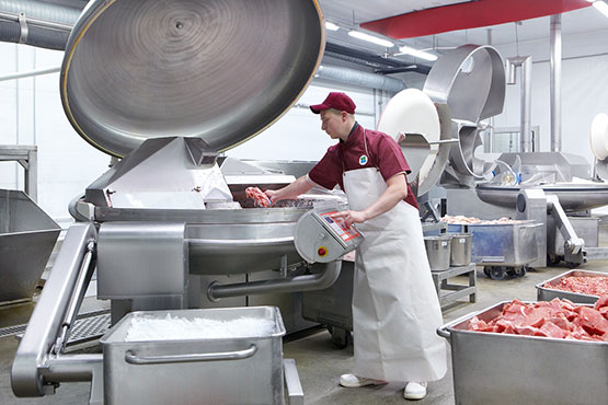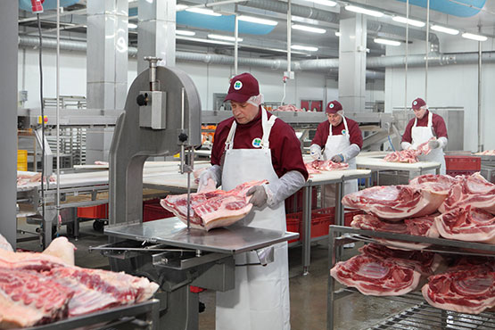 Происходит изготовление мяса, идеально подходящего для кулинарии, по технологиям PIC-кода, объединяющих MES и WMS системы.