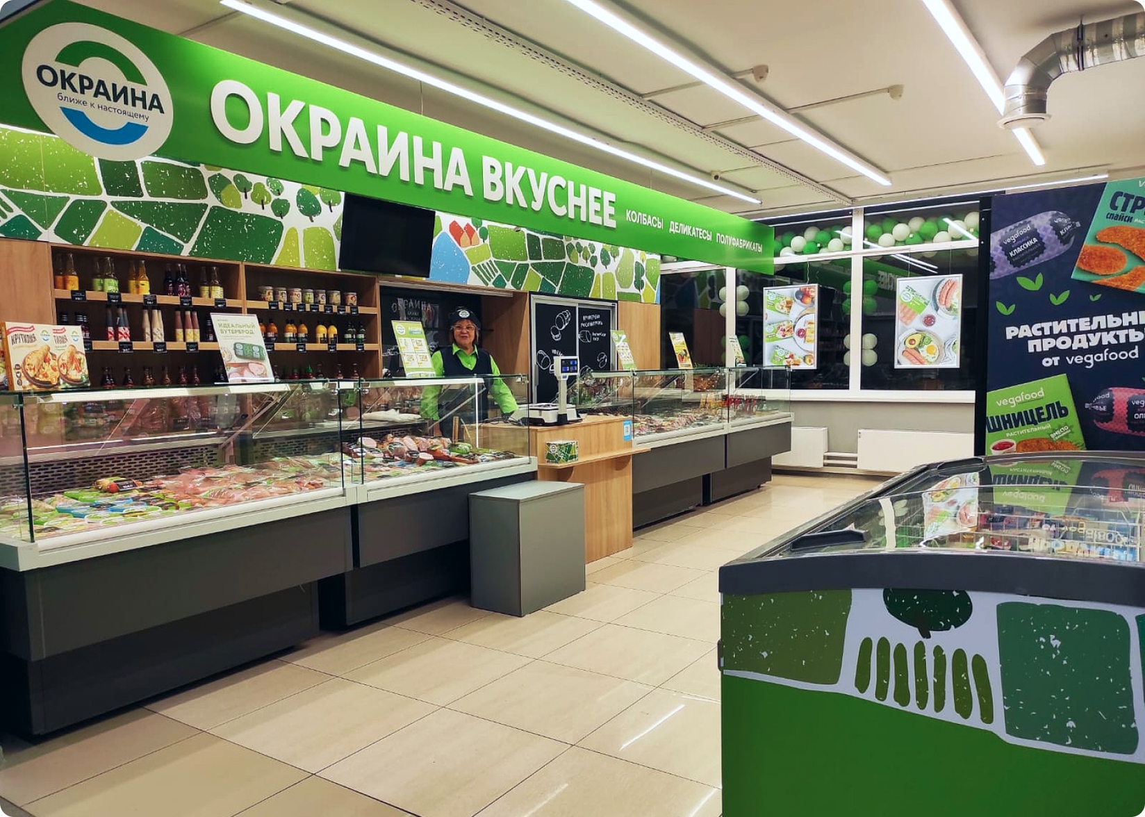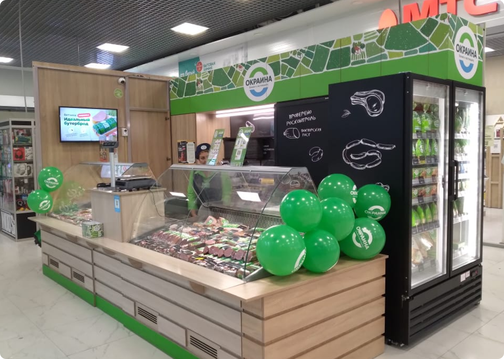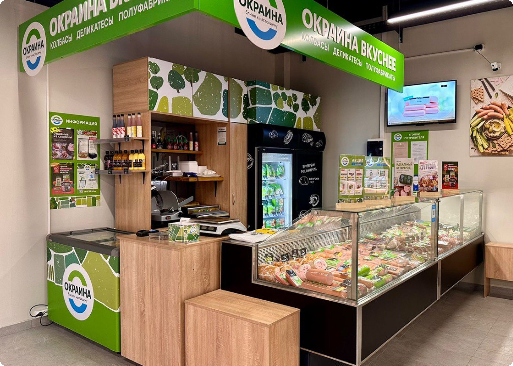 Фирменный мясной магазин от «Окраины» — это находка для настоящих гурманов. Широкий ассортимент продукции дает гарантию на выгодную франшизу. Каждая компания найдет для себя свежие: шашлык, мясо, нарезку и т.д.